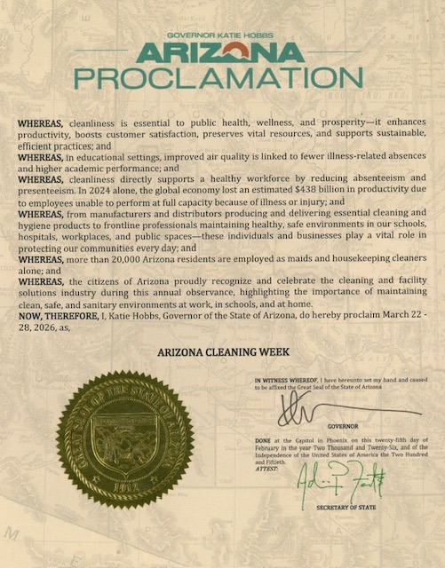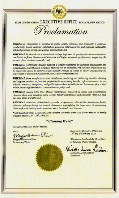 Thank you to our members who have submitted proclamation requests for International Cleaning Week 2026! Interested in helping secure a proclamation in your state? Contact us and help put it on the map!