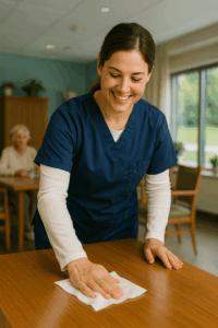 - Continuous training: Staff education should be ongoing, not a one-time event. Whenever new products or procedures are introduced, retraining ensures consistency. Employees should know when to clean, sanitize, or disinfect, and the required contact times for each process.