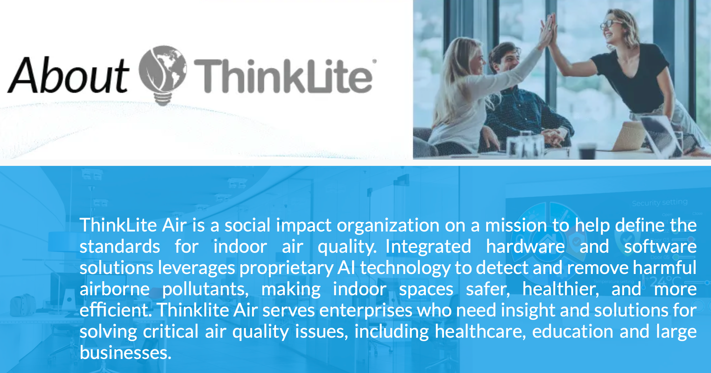 ThinkLite is a global technology leader designing and installing energy‑efficient LED lighting and indoor air quality solutions—powering smarter, healthier buildings across commercial and medical environments.