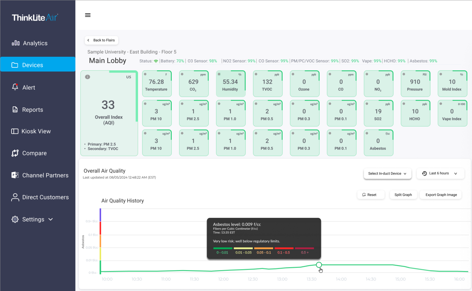 Flair delivers enterprise-grade, 24/7 precision air quality monitoring—tracking particles, CO₂, VOCs, humidity, and more in real time for space coverage up to 5,000 sq ft.