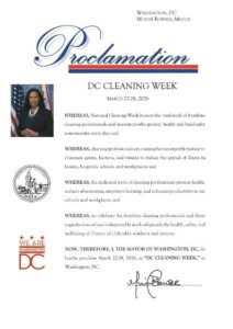 It’s official—Washington, DC will celebrate Cleaning Week when ISSA members descend on the nation’s capital for the 2026 Clean Advocacy Summit! Thank you to DC Mayor Muriel Bowser for proclaiming an official Cleaning Week (see above proclamation) and ISSA member company Melwood for securing the proclamation.