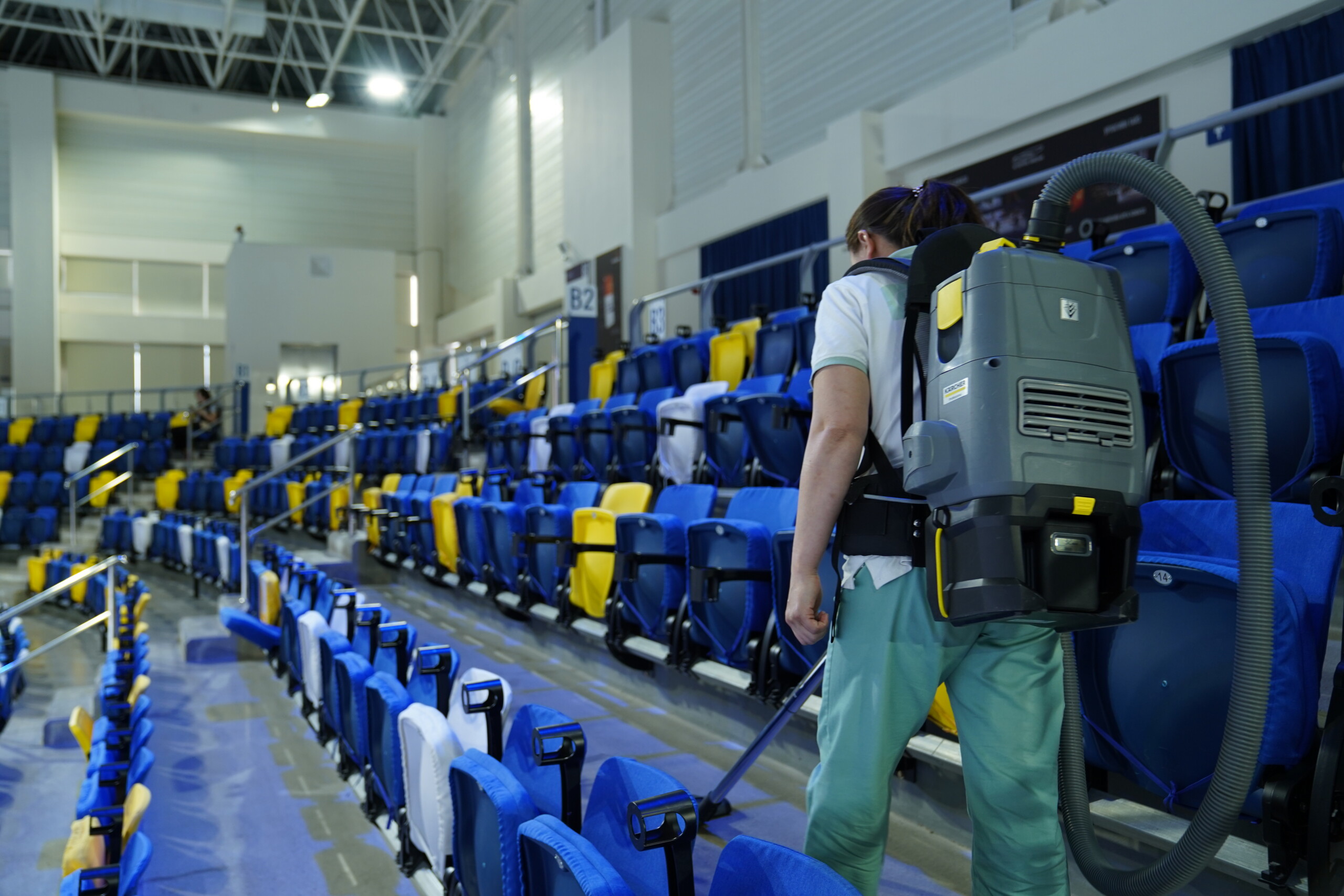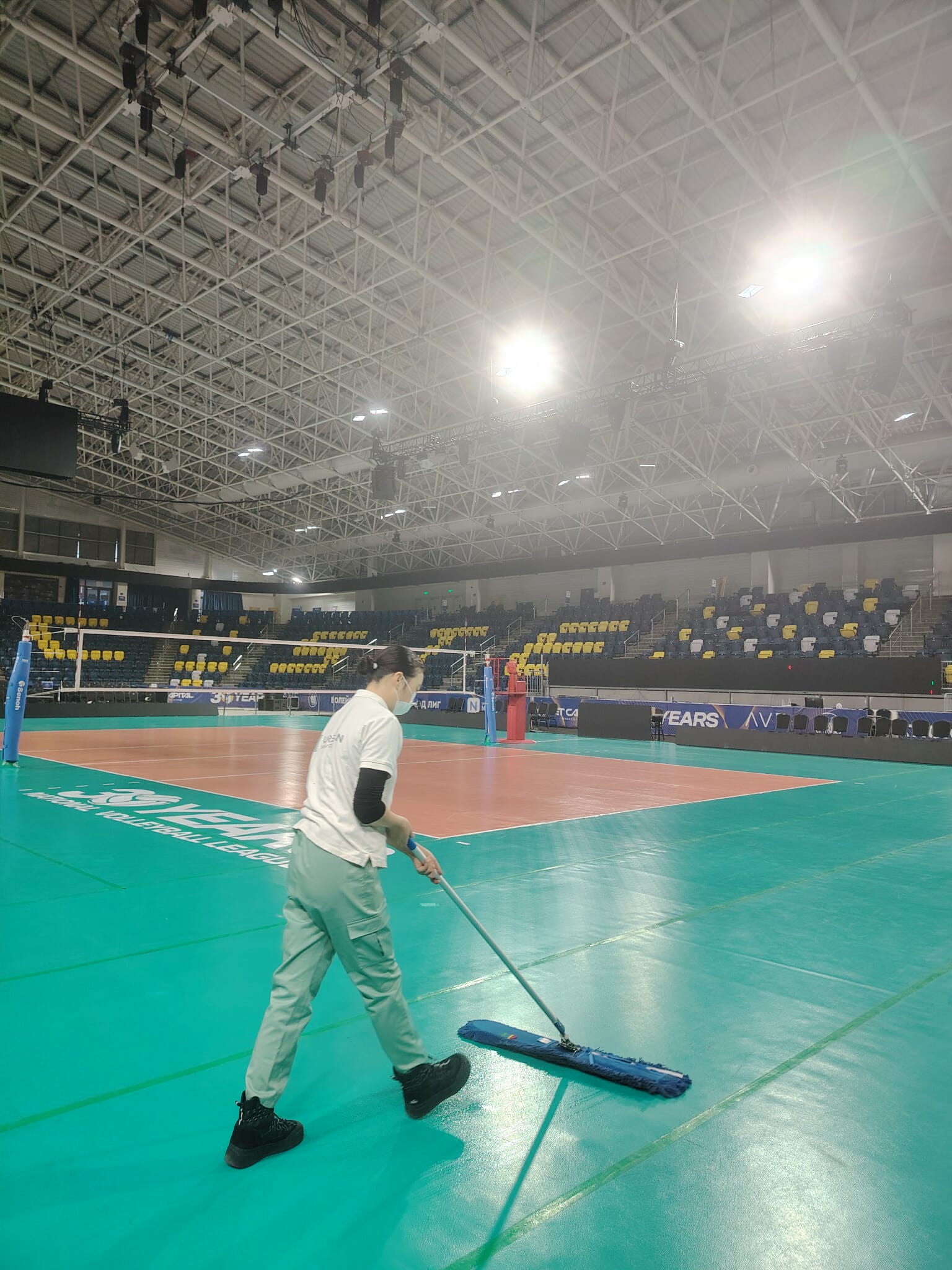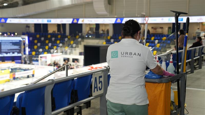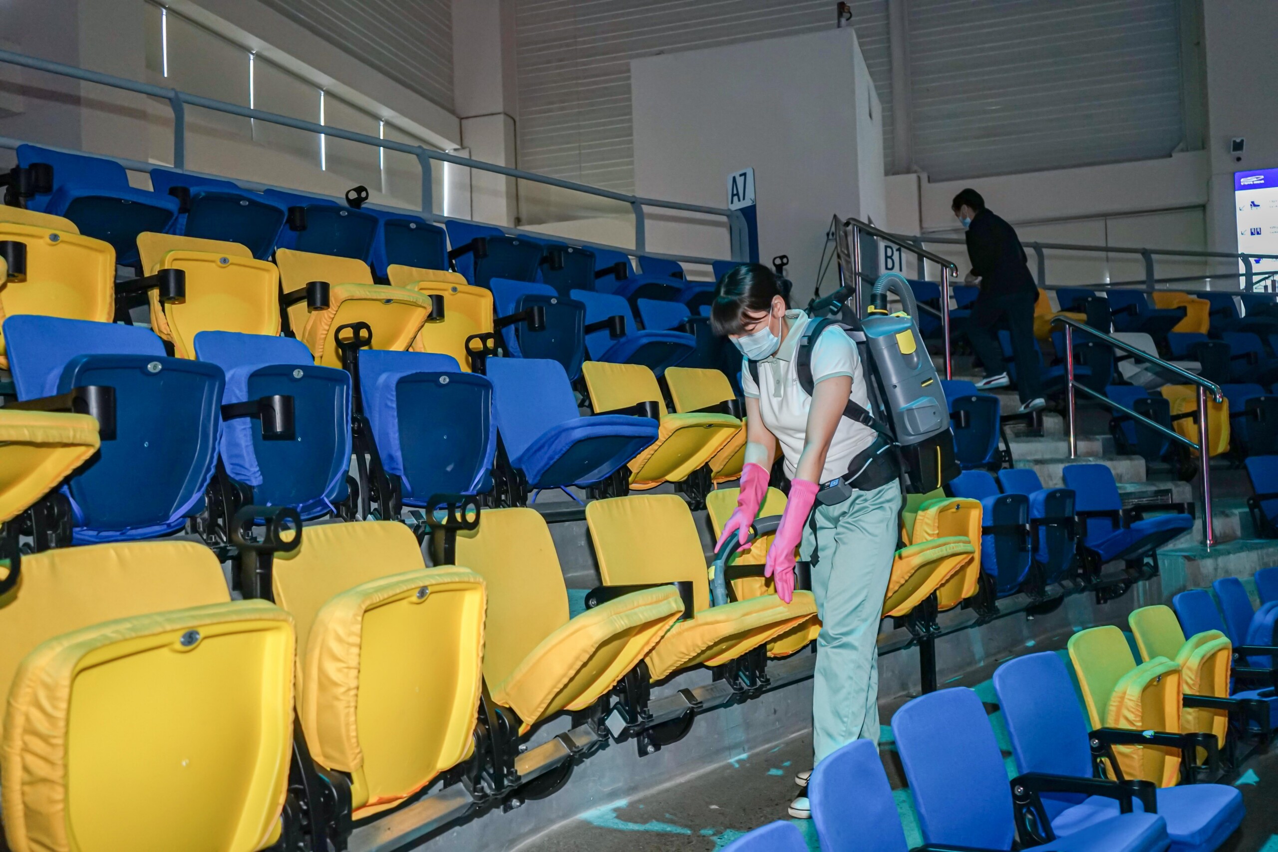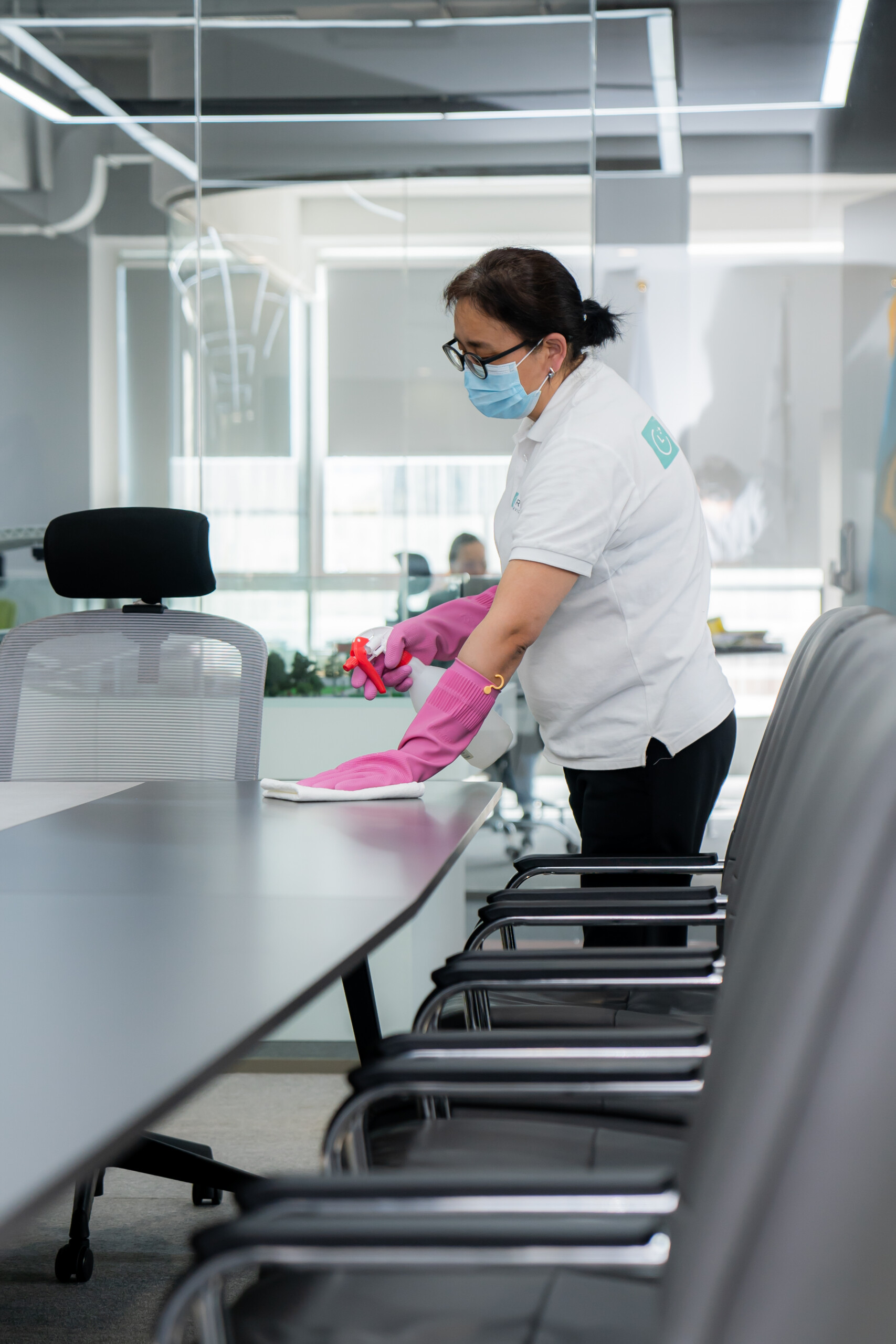 Note: Provided images showcase our cleaning management in the lobby, conference rooms, offices, restrooms, and spectator seating areas.