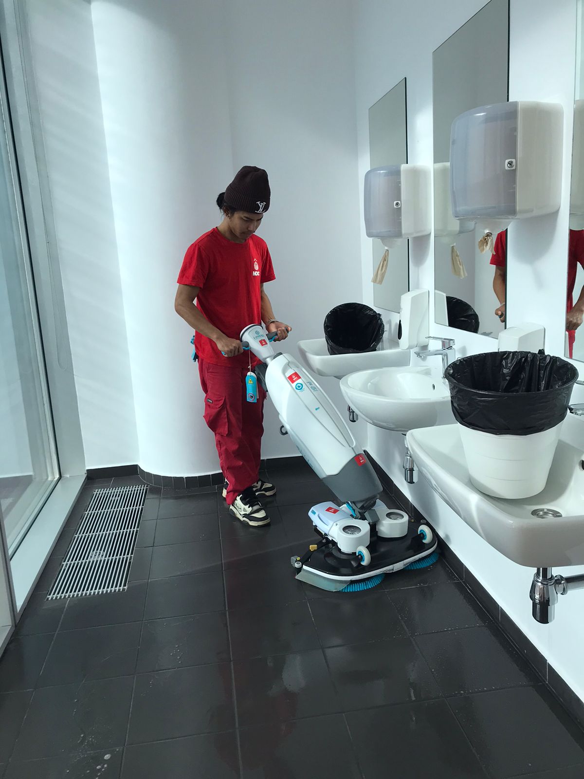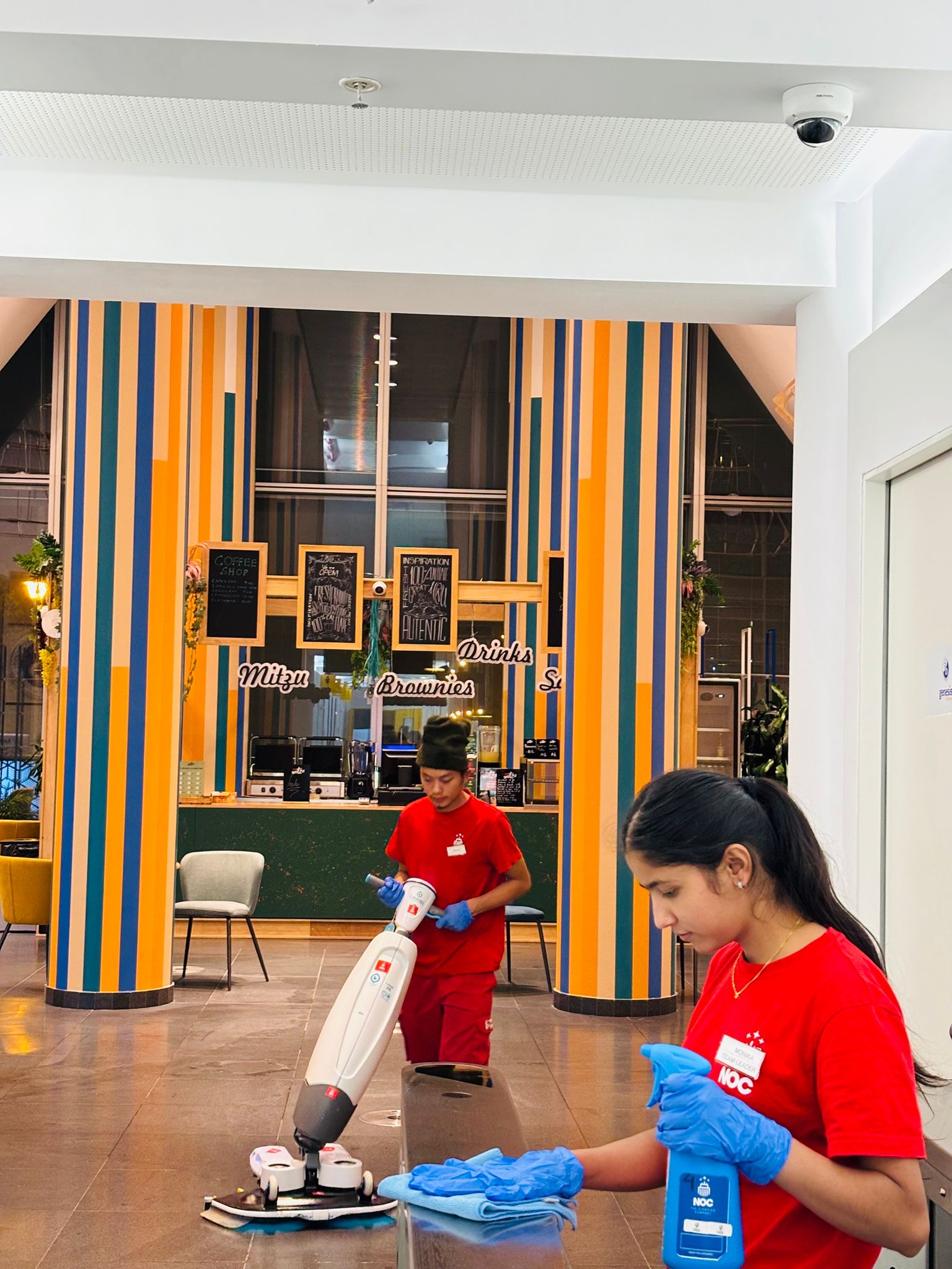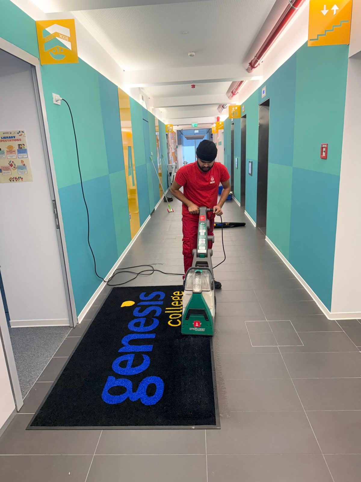 At NOC – The Cleaning Company, we follow ISSA cleaning standards and global best practices to ensure Genesis College consistently meets the highest levels of cleanliness. We implemented a comprehensive cleaning plan that includes daily, weekly, and monthly tasks to ensure full facility coverage. Our cleaning team participates in monthly professional training sessions focused on hygiene standards, efficiency, chemical safety, equipment use, and self-inspection. Weekly inspections are conducted jointly by our Project Manager and the Genesis College Facility Manager using digital inspection tools to track performance and identify areas for improvement. We apply the TACT principle (Time, Agitation, Chemical, Temperature) to ensure effective and safe cleaning and sanitation, using non-toxic, biodegradable cleaning products from ECOLAB Romania. We also use advanced equipment such as the i-mop XXL and COBI 18 robotic scrubber, which allow us to clean and dry floors faster and more efficiently while maintaining exceptional cleaning performance. These technologies increase productivity, reduce manual strain, and ensure consistent results throughout the entire campus.