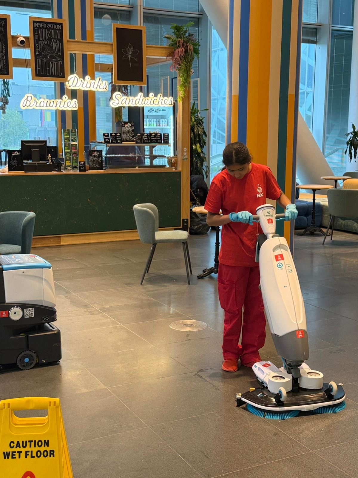 We are committed to creating inclusive, accessible, and safe environments for all students, staff, and visitors. Hallways, classrooms, and common areas are maintained clear of obstacles to ensure safe and easy movement for individuals with disabilities. Restrooms, including accessible facilities, are cleaned with increased frequency and attention to ensure hygiene, safety, and comfort for all users. Clear and visible signage is used throughout the campus to improve navigation and safety awareness. For our cleaning staff, we provide ergonomic equipment such as the i-mop XXL, which reduces physical strain and improves safety and efficiency. We also provide continuous training, safety guidance, and proper protective equipment to ensure the wellbeing of our team. At NOC – The Cleaning Company, we believe cleaning is more than a service—it is a commitment to protecting health, supporting education, and creating environments where every student can learn, grow, and succeed in comfort and safety.